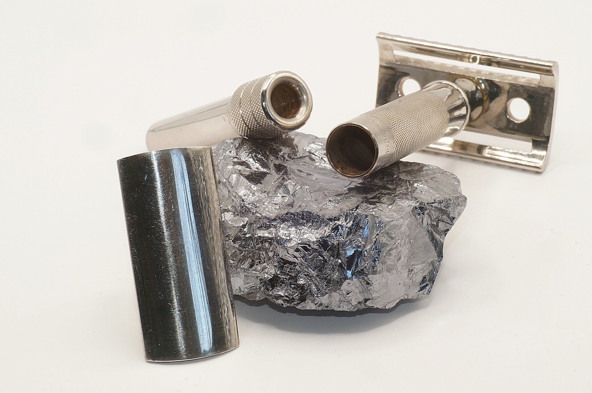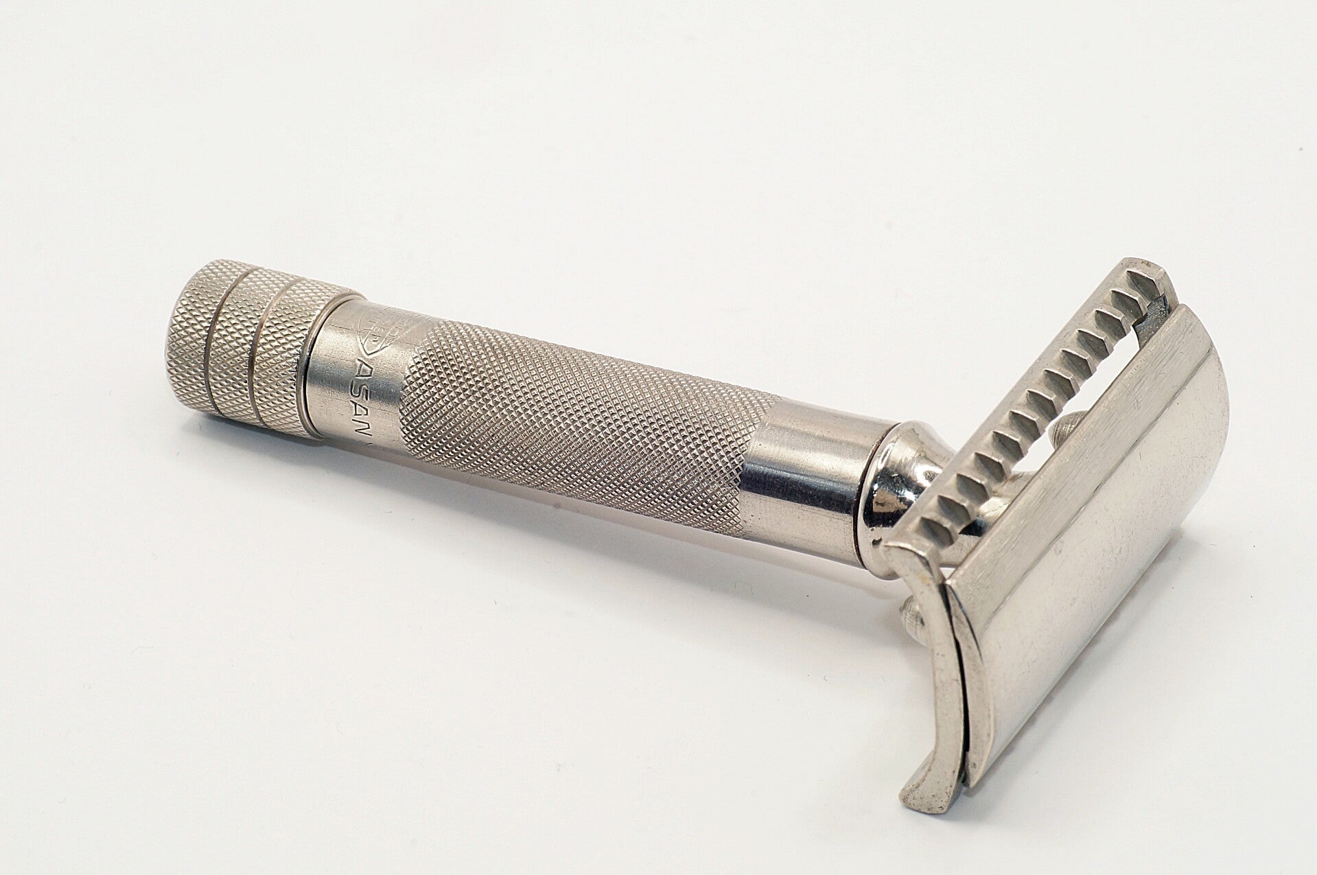 condition: traces of time and usage, handle and end piece replated with Palladium, shave ready